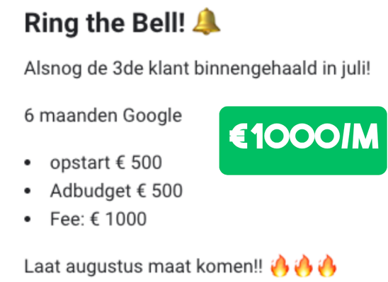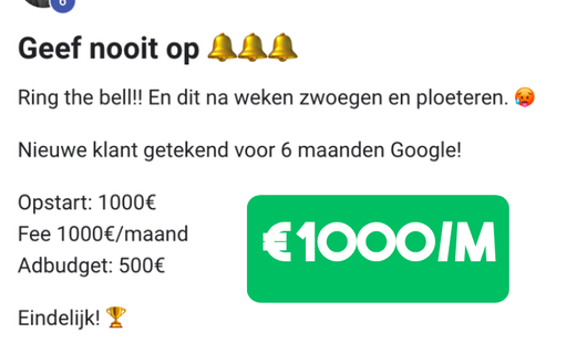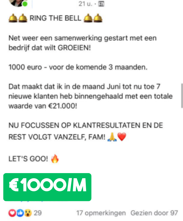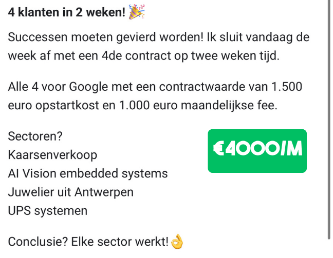 "We zijn nu 3 jaar later en ik kan met veel fierheid zeggen dat we onze agency ver boven de €10.000,- per maand hebben geschaald!"