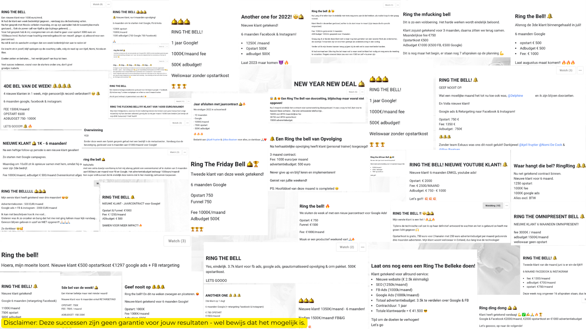 "Wekelijks kan je genieten van meerdere coaching calls gegeven door Kjell en Nomi. Binnen de 5 minuten krijg je een antwoord op al je vragen. Dit is het meest complete stap-voor-stap programma."