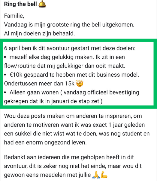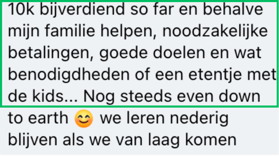 "Met trots kan ik na 1,5 jaar zeggen dat ik meer dan €10.000,- per maand verdien, ik had nooit verwacht dat ik op dit punt ging staan"
